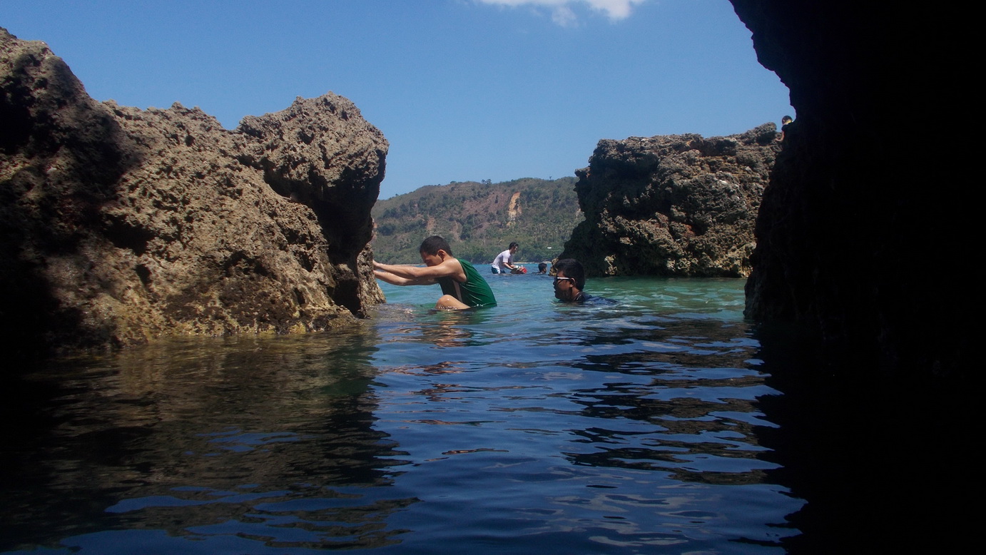 There's a small lagoon on the left side of the cove. Water is very clear inside, children can play there as it is not as hot because about 3 huge rocks gives shade inside the lagoon. While going to the lagoon you will notice that there are huge rocks under the water. There's lots of rocks on this part of the beach but the water is still very clear. When you walk along those rocks the bottom doesn't get murky.